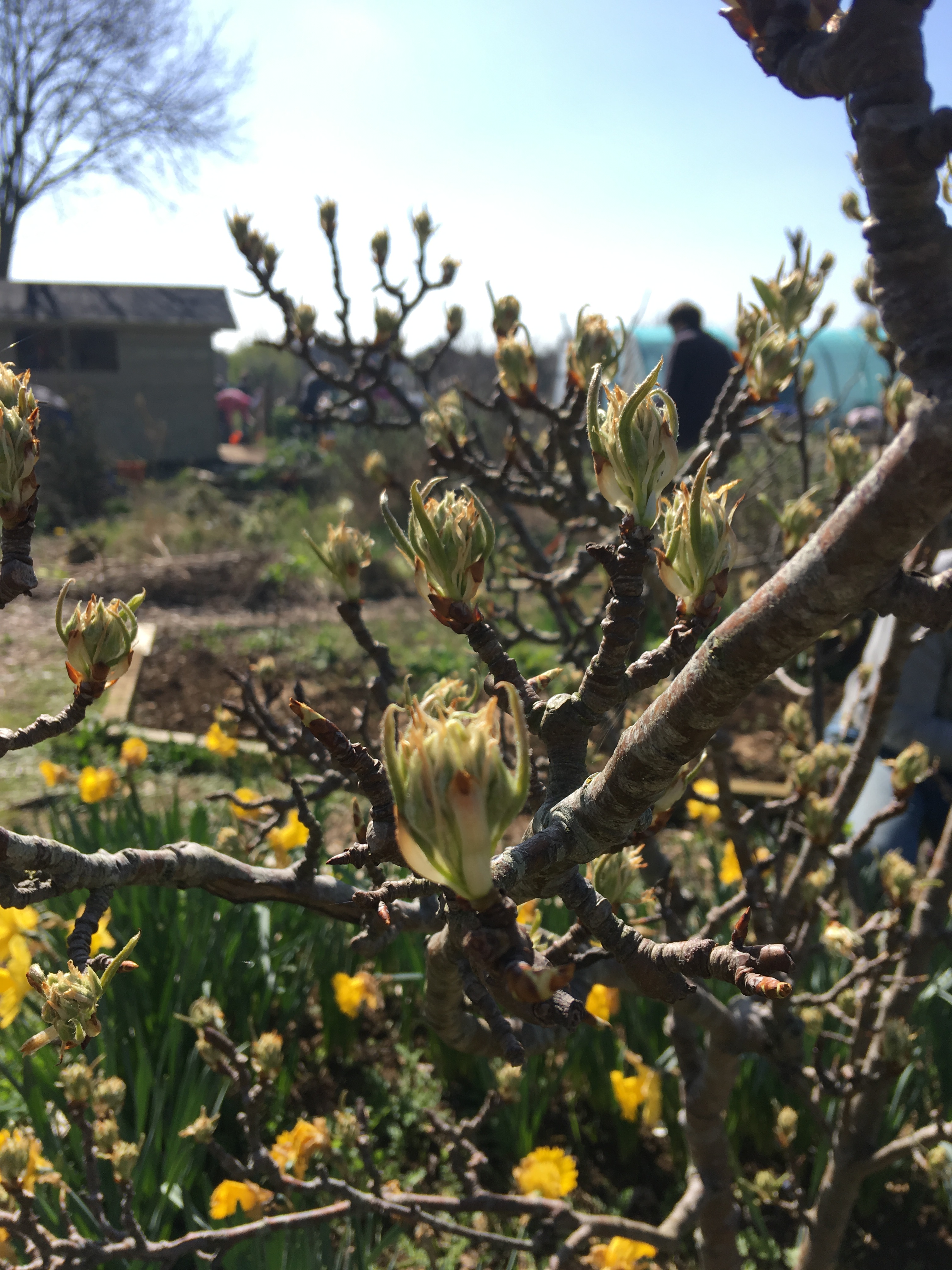 There is a fresh buzz on Lottie each March and this March was no exception as the days grow longer and the warmth in the soil heralds new growth. The rhubarb is “popping” from its crowns and reaching its leaves out towards the sun, while the sweet, tender brassica shoots thank us for our winter’s work.