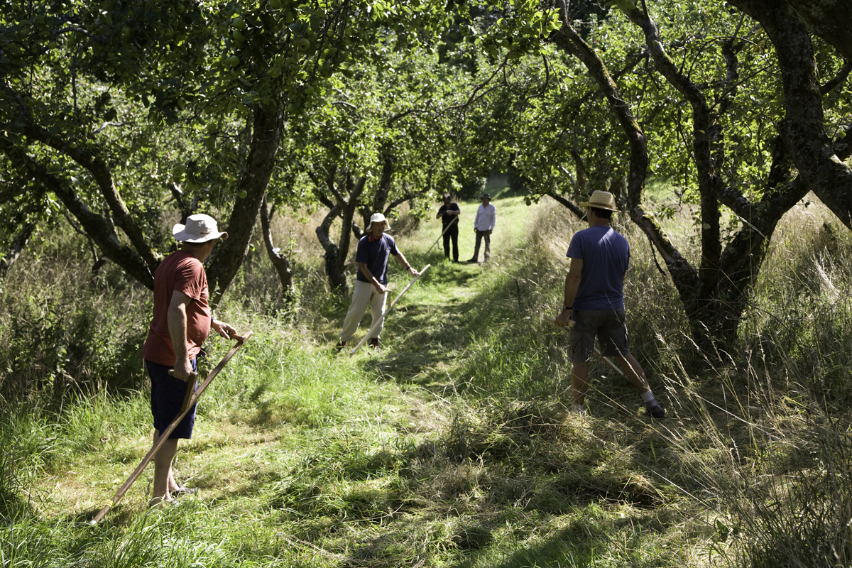 There is a national organisation – The Scythe Association – that coordinates festivals, and if you are a competitive person you can get physical in a variety of mowing races. I just use my scythe for keeping my weedy lawn in check and to get involved in the occasional group scythe in the orchard at Stanmer Park. I love it because it’s a gentle activity, but it also builds a relationship with you as a carefully balanced tool; you learn how to keep it sharp and understand when it is working at its best capacity. The blade I use is Austrian – a hand forged very light blade. Interestingly the scythe was used by women more on the steep slopes of the Alps. In England it had a much more macho reputation as the English scythe was very heavy, and I think this has put people off a little in the recent past, with no information on how to use it.