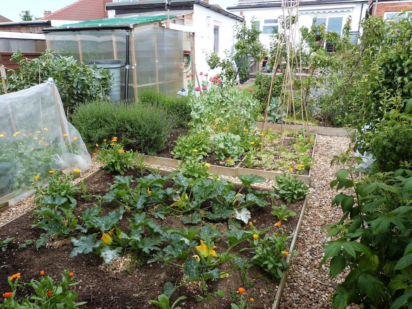 It was one of our best growing years – so much so that we bought an extra freezer. Especially good harvest of apples, pears and plums – probably because of the long cool, suuny spell in April when the blossom stayed on the trees for weeks. And we’ve learnt that we need to protect our runner and French beans from the strong winds by putting up windbreaks on two sides of their raised bed – this definitely improved the harvest this year.