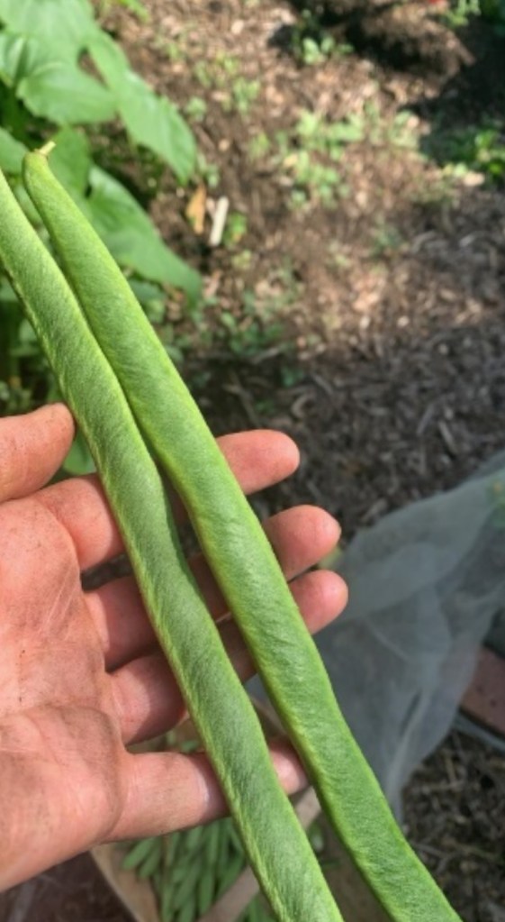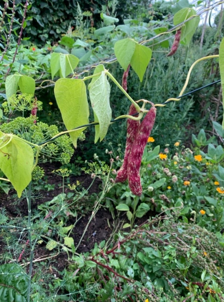 I still think this is a better frame than the traditional wigwam or row of bamboo canes tied at the top. I’m going to keep experimenting – it’s always interesting!